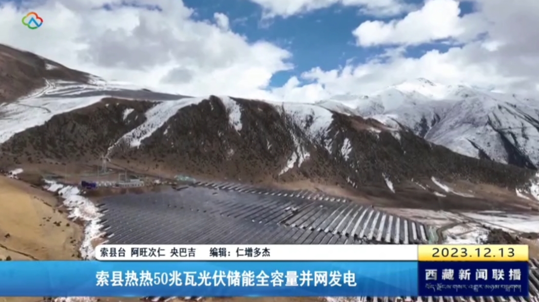 12.14 西藏衛(wèi)視(西藏新聞聯(lián)播)、那曲融媒(新聞聯(lián)播)報(bào)道西藏開(kāi)投集團(tuán)索縣熱熱50兆瓦光伏儲(chǔ)能全容量并網(wǎng)發(fā)電