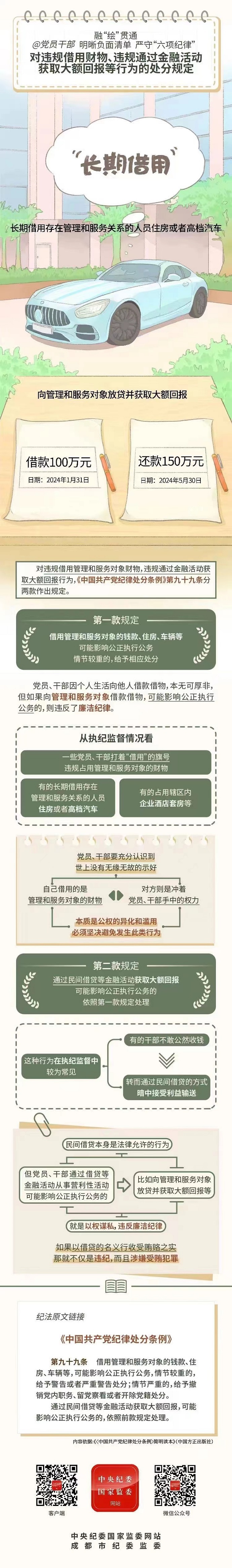 漫畫說紀(jì)丨對違規(guī)借用財(cái)物、違規(guī)通過金融活動(dòng)獲取大額回報(bào)等行為的處分規(guī)定