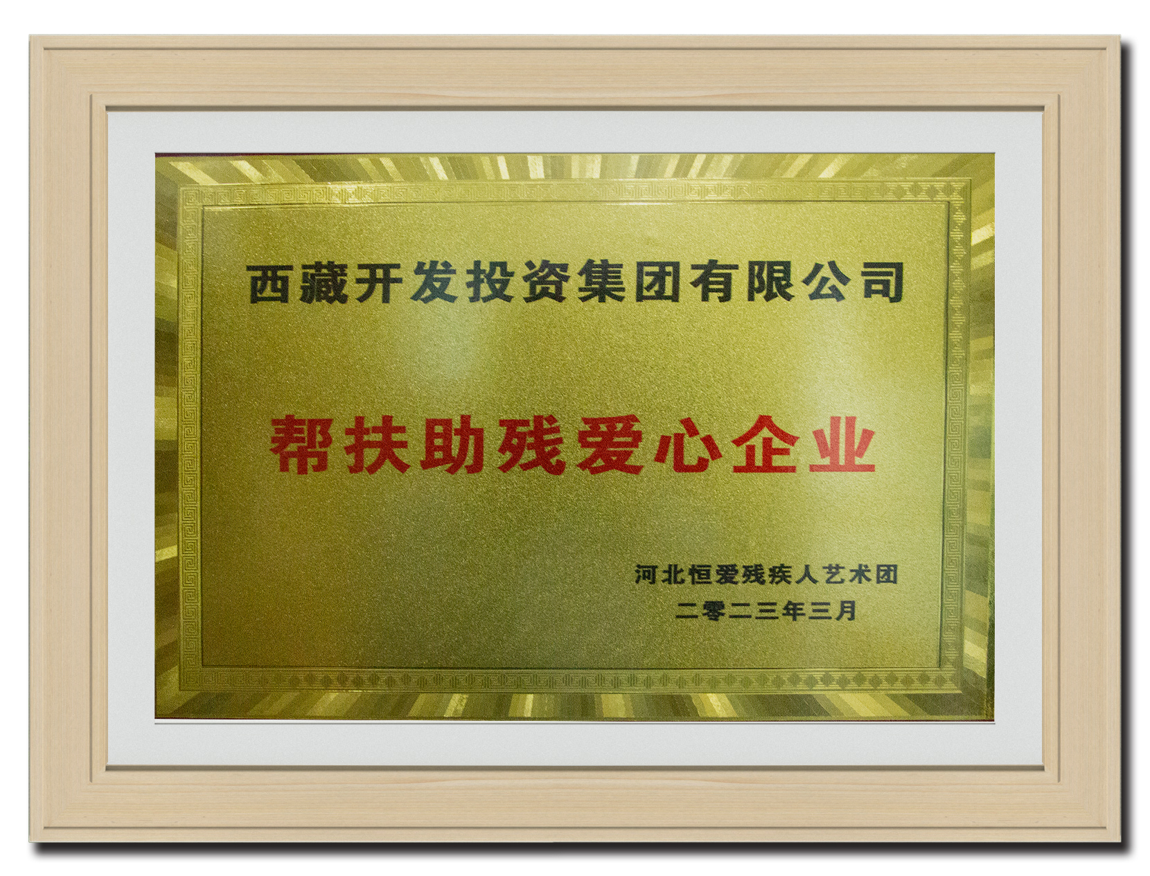 2023年3月 榮獲幫扶助殘愛(ài)心企業(yè)獎(jiǎng)