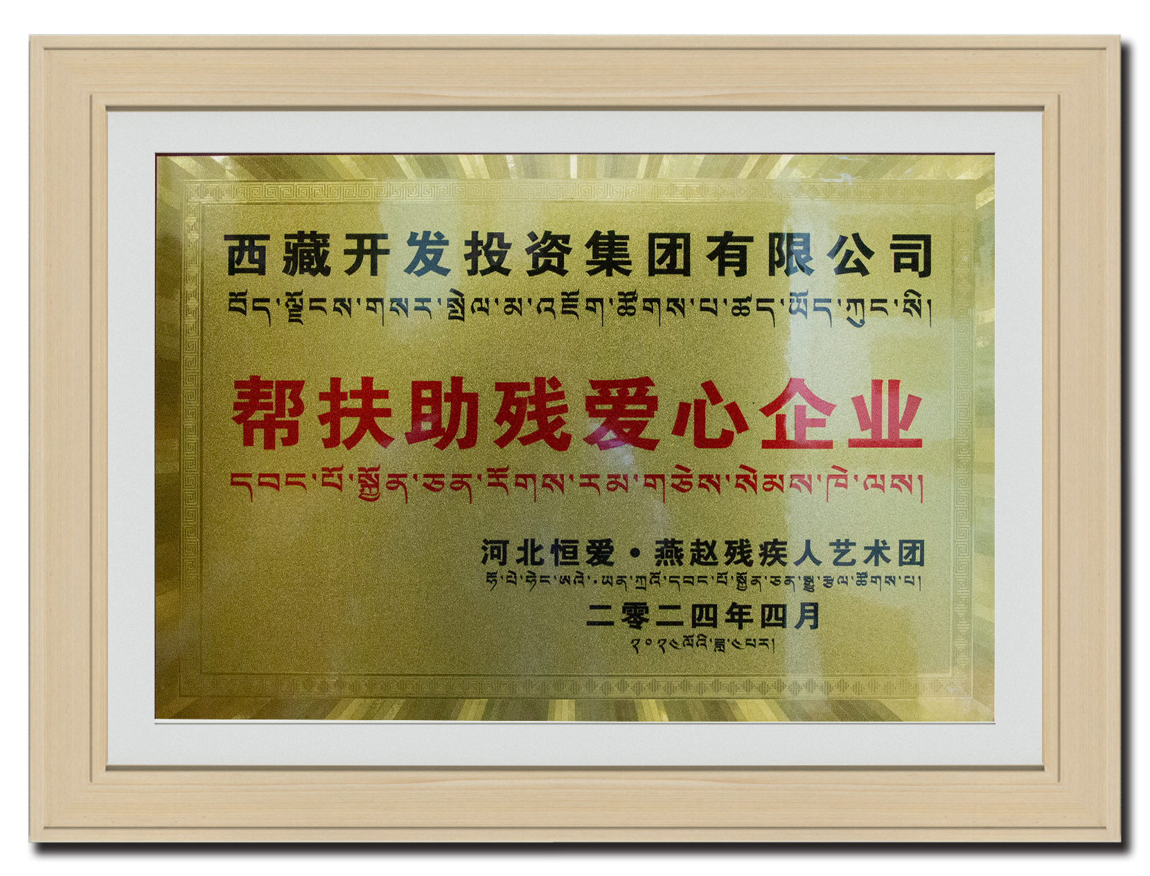 2024年4月榮獲幫扶助殘愛心企業(yè)獎