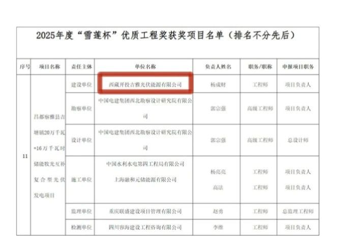 8月7日,西藏自治區(qū)住房和城鄉(xiāng)建設(shè)廳公布2025年度“雪蓮杯”優(yōu)質(zhì)工程獲獎項目名單,由西藏開投吉雅光伏公司投資建設(shè)的昌都察雅縣吉塘鎮(zhèn)20萬千瓦+16萬千瓦時儲能牧光互補復(fù)合型光伏發(fā)電項目榮獲該獎項。