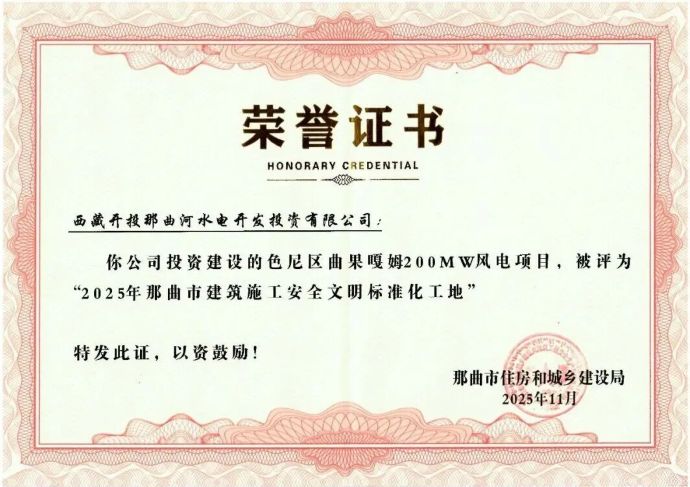 喜報丨色尼區(qū)曲果嘎姆風電項目榮譽+1