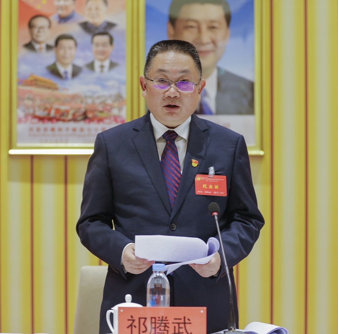 在熱烈的掌聲中,祁騰武向大會作報告。報告共分五個部分:一、工作回顧;二、當前形勢和任務(wù);三、今后工作指導(dǎo)思想和發(fā)展目標;四、當前和今后一段時間的重點工作;五、全面加強黨的建設(shè)。