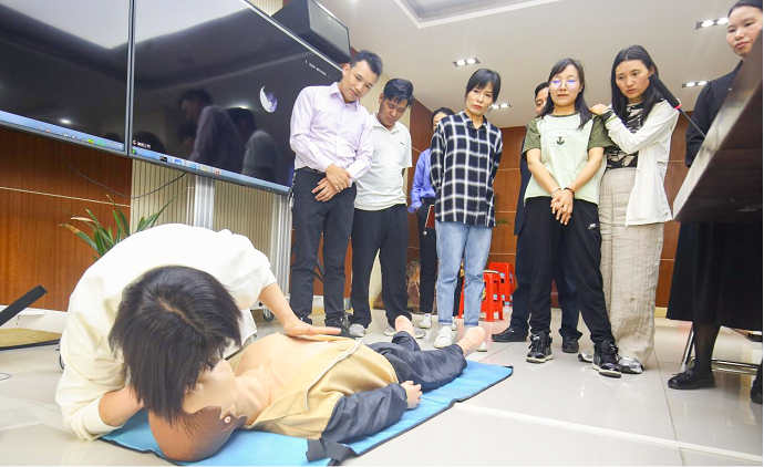 培訓(xùn)過程中,導(dǎo)師通過示范指導(dǎo)、疑問解答、模擬訓(xùn)練等方式,著重演示了海姆立克急救法、心肺復(fù)蘇操作、防震減災(zāi)地震自救以及創(chuàng)傷救護等現(xiàn)場救護操作方法,著重強調(diào)了應(yīng)急救護“黃金四分鐘”及心肺復(fù)蘇胸外按壓的至關(guān)重要性,全體參訓(xùn)人員在導(dǎo)師的指導(dǎo)下對所學(xué)項目進行模擬練習(xí),對不規(guī)范的流程與動作,進行糾正,確保參訓(xùn)人員真正掌握應(yīng)急救護技術(shù)。