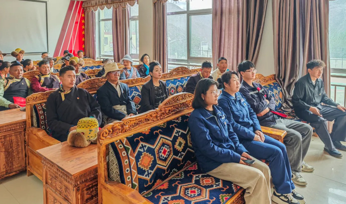▲嘎堆水電公司黨支部與索囊村黨支部聯(lián)合開(kāi)展紀(jì)律教育。劉亮霞 攝