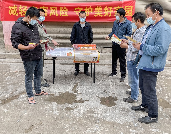 (發(fā)放防災(zāi)減災(zāi)宣傳單 劉鑫榮攝)