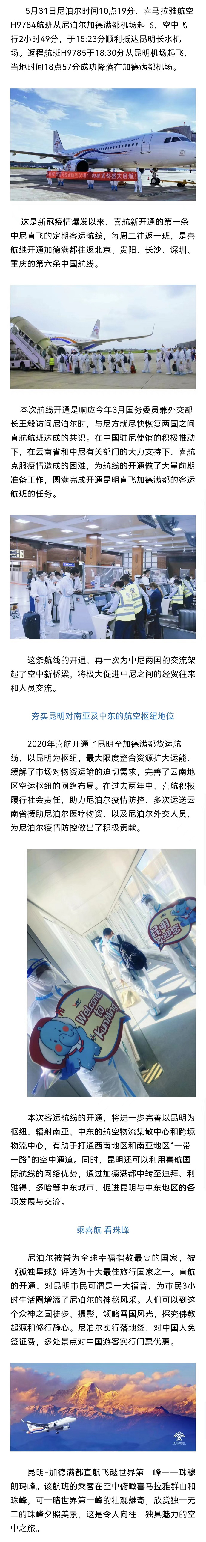 喜航開(kāi)通加德滿(mǎn)都直飛昆明客運(yùn)新航線(xiàn)