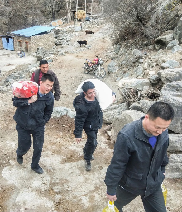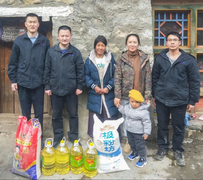 慰問人員深入到困難家庭,詳細(xì)了解他們的生活狀況及面臨的困難,送上米、面、油等生活必需品,并致以藏歷新年的問候和祝福。