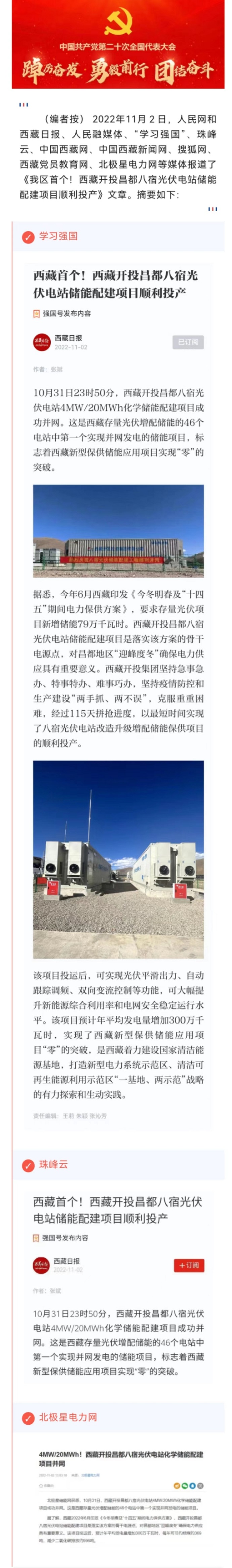 人民網(wǎng)和西藏日報、人民融媒體、“學習強國”、珠峰云、中國西藏網(wǎng)、搜狐網(wǎng)、西藏黨員教育網(wǎng)、北極星電力網(wǎng)等