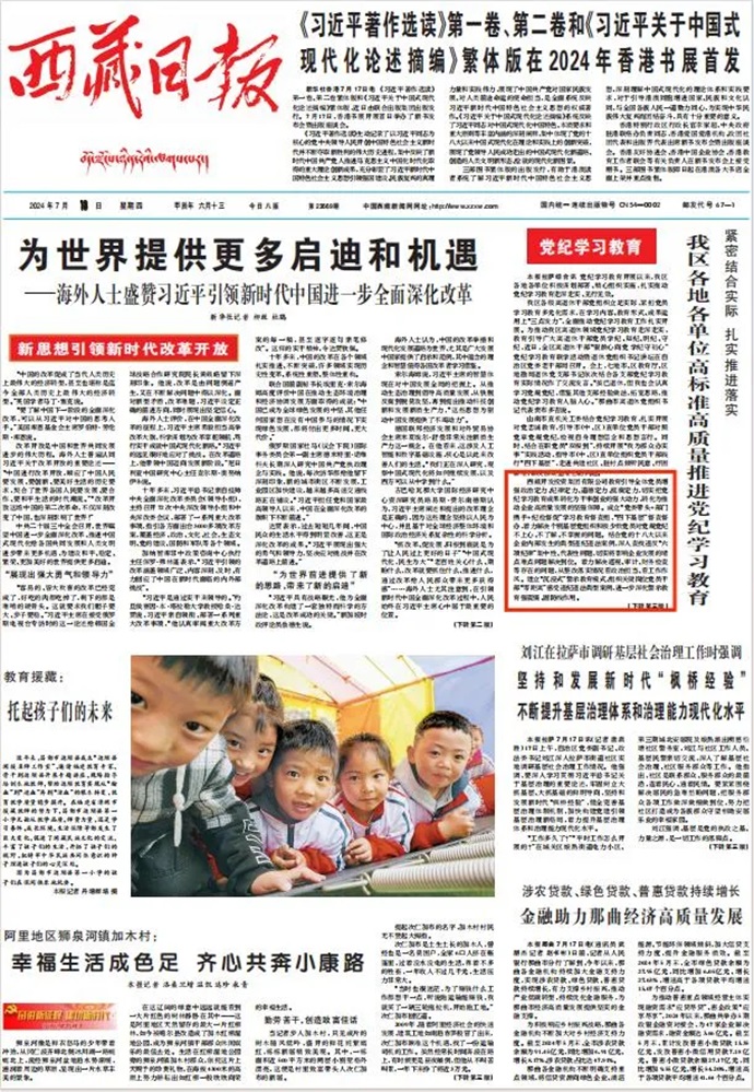 編者按:7月18日,西藏日報報道了《緊密結(jié)合實際 扎實推進落實 我區(qū)各地各單位高標(biāo)準(zhǔn)高質(zhì)量推進黨紀(jì)學(xué)習(xí)教育》文章。摘要如下: