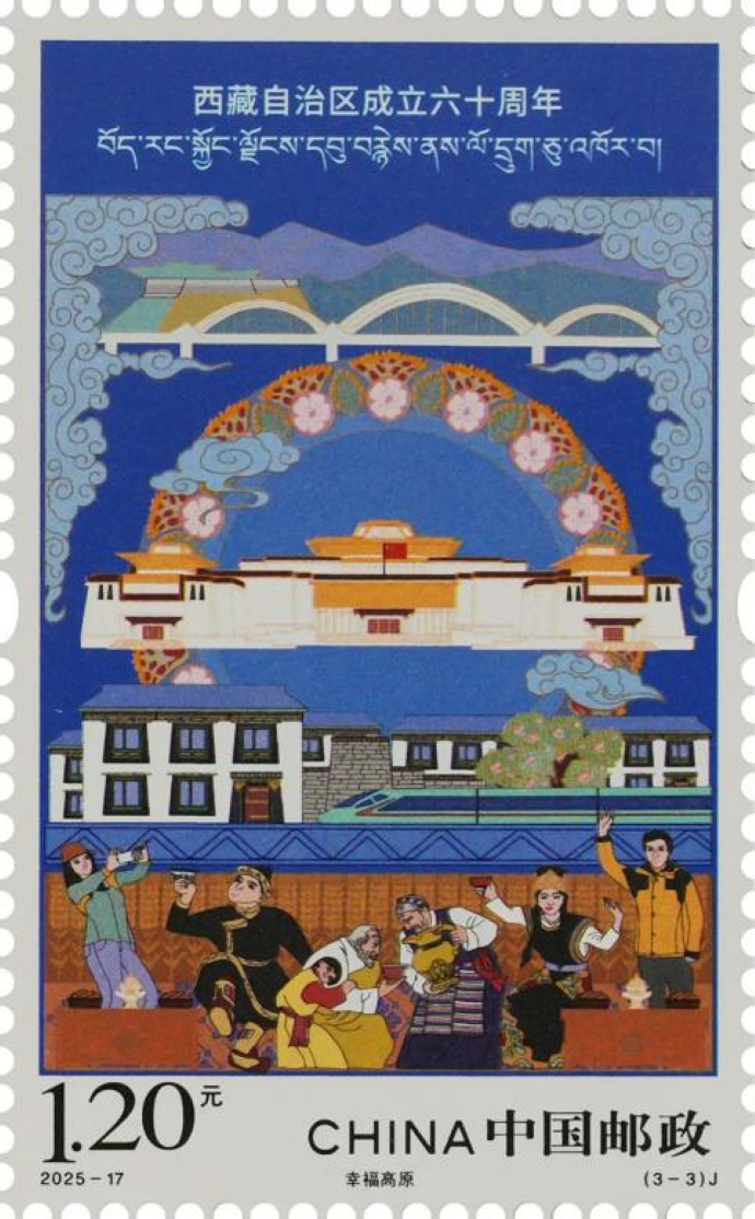 在西藏自治區(qū)成立60周年之際,中國(guó)郵政日前正式發(fā)行《西藏自治區(qū)成立六十周年》紀(jì)念郵票1套3枚,第三枚“幸福高原”將旁多水利樞紐與拉林鐵路、拉薩河特大橋等標(biāo)志性工程共同呈現(xiàn),于方寸之間展現(xiàn)了西藏發(fā)展的壯闊歷程。旁多水利樞紐這座被譽(yù)為“西藏三峽”的超級(jí)工程,已成為西藏跨越式發(fā)展的重要象征。