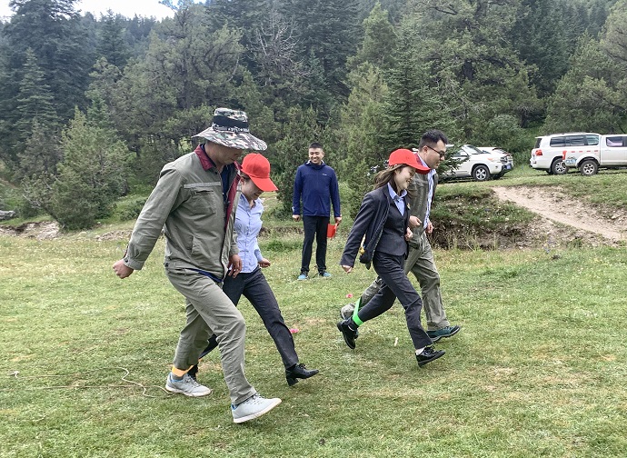 座談結(jié)束后,全體黨員面向黨旗莊嚴(yán)宣誓,重溫入黨誓詞,激勵(lì)永葆入黨初心。最后,兩支部開展了以“重溫紅色”為主題的戶外團(tuán)建活動(dòng),通過(guò)重走長(zhǎng)征路、黨建知識(shí)問(wèn)答、紅色詞匯你比我猜、兩人三足等活動(dòng)進(jìn)一步增進(jìn)支部交流互動(dòng)?;顒?dòng)現(xiàn)場(chǎng),參賽隊(duì)員充分發(fā)揚(yáng)團(tuán)隊(duì)精神,積極參與,精誠(chéng)合作,加油聲、吶喊聲、歡呼聲此起彼伏。