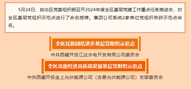 捷報(bào)傳來丨西藏開投這些黨組織被評(píng)為2023年度全區(qū)基層黨組織示范點(diǎn)