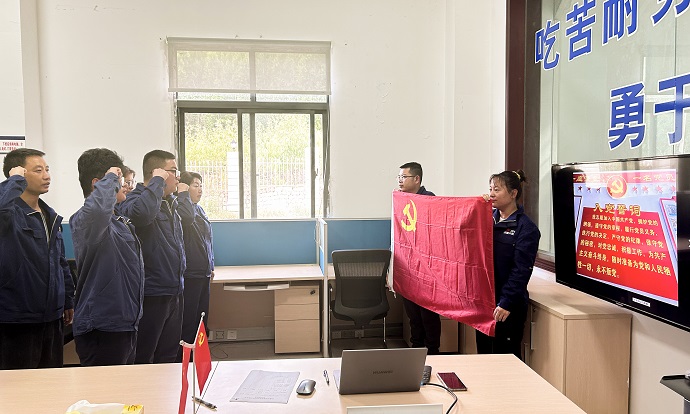 活動伊始,莊嚴(yán)的升國旗、唱國歌儀式在嘎堆水電公司生活營地舉行,鮮艷的五星紅旗在全體黨員和員工的注目禮中冉冉升起,雄壯的國歌聲響徹云霄。接著,嘎堆水電公司黨支部組織新黨員在黨員活動室舉行了入黨宣誓儀式,并開展了重溫入黨誓詞活動。隨后,嘎堆水電公司黨支部書記謝鵬為大家上了一堂生動的專題黨課。黨課圍繞黨的創(chuàng)新理論、黨的基本知識、黨的百年奮斗史、新時(shí)代偉大成就等方面展開,引導(dǎo)黨員們奮進(jìn)新征程、建功新時(shí)代。最后,黨員干部職工齊聚一堂,暢談黨的光輝歷程和豐功偉績。大家紛紛表示,立足崗位比貢獻(xiàn),進(jìn)一步發(fā)揮好黨組織的戰(zhàn)斗堡壘作用和黨員的模范表率作用。