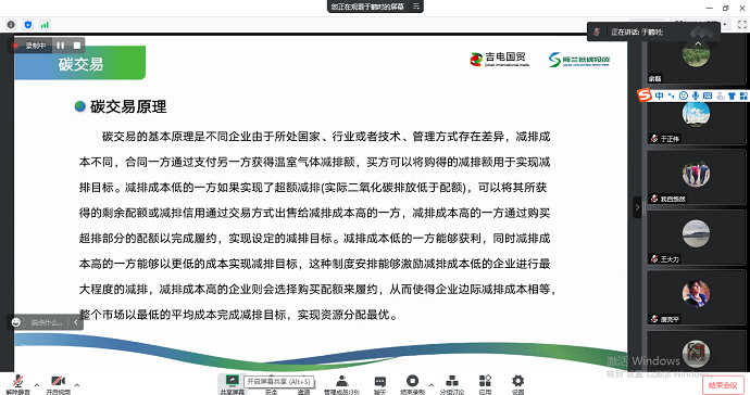 講座就“碳中和”國際背景、國家“碳達(dá)峰”“碳中和”目標(biāo)和政策進(jìn)行了深入解讀。對自愿減排項(xiàng)目的開發(fā)路徑、重點(diǎn)項(xiàng)目碳排放的核算、碳交易市場建設(shè)以及國際綠證開發(fā)等相關(guān)概念與實(shí)施的基本原則進(jìn)行了講解與答疑。