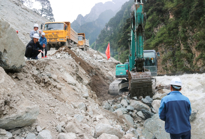 截至7月8日12時,地方政府和我公司及各參建單位共組織投入裝載機、挖掘機、工程車等機具200多臺次,投工投勞800余人次。在地方政府的大力支持下、在金橋支部黨員突擊隊的帶動下、在所有搶修人員的共同努力下,嘉黎縣至金橋水電站公路已基本搶通,電站建設的物資陸續(xù)運至現(xiàn)場,當地群眾生活車輛緩慢通過,沿途經過的貨運車輛、越野車輛紛紛減速鳴笛向飄揚的共產黨員突擊隊隊旗致敬,向所有參與搶修公路的人員致謝。
