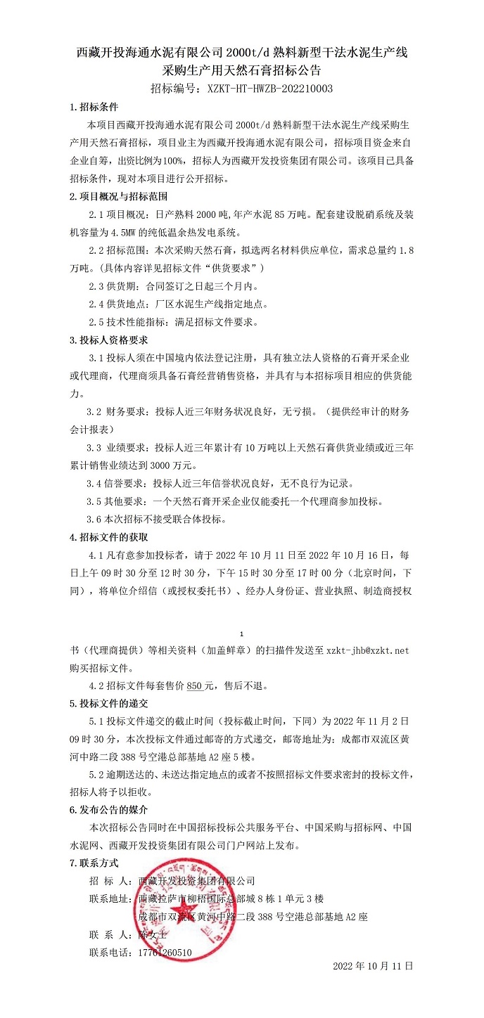 采購生產(chǎn)用天然石膏招標(biāo)公告
