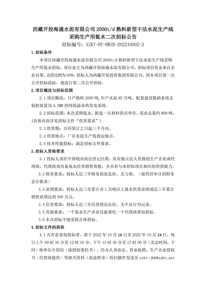 采購(gòu)生產(chǎn)用氨水二次招標(biāo)公告