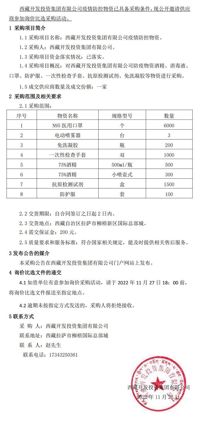 西藏開(kāi)發(fā)投資集團(tuán)有限公司疫情防控物資