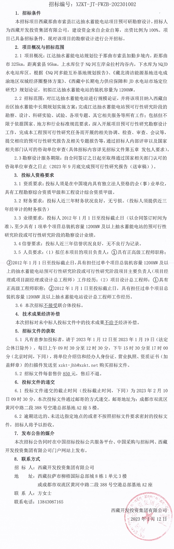 西藏那曲市索縣江達抽水蓄能電站項目預可研勘察設(shè)計招標公告