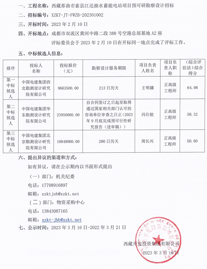中標(biāo)候選人公示