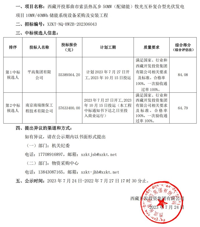 中標(biāo)候選人公示