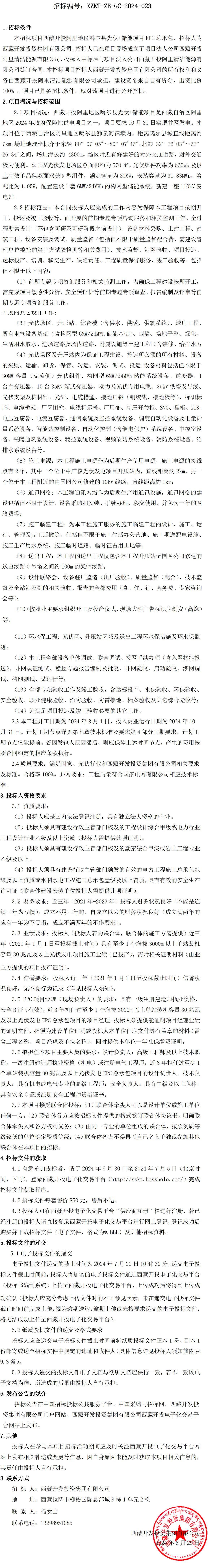 西藏開投阿里地區(qū)噶爾縣光伏+儲能項目EPC總承包招標公告