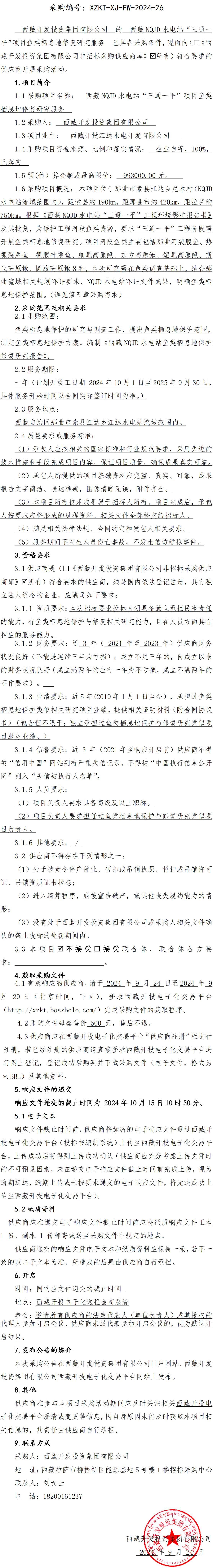 西藏NQJD水電站“三通一平”項(xiàng)目魚(yú)類(lèi)棲息地修復(fù)研究服務(wù)詢(xún)價(jià)采購(gòu)公告