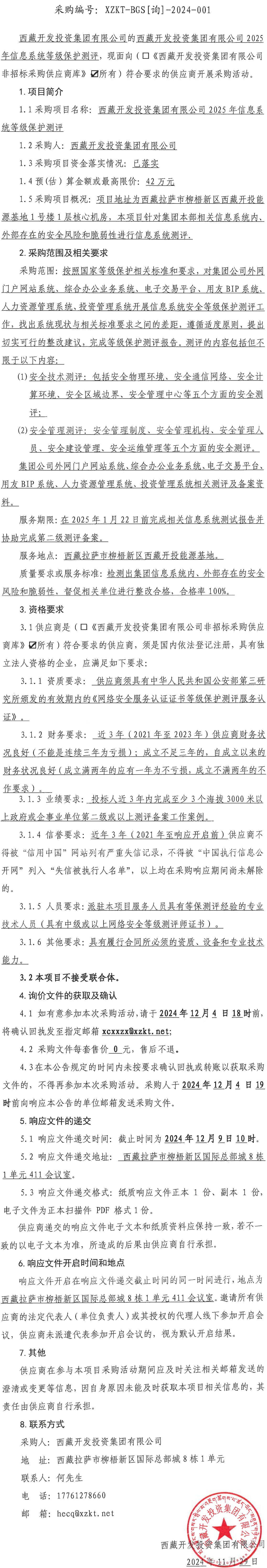 西藏開發(fā)投資集團(tuán)有限公司2025年信息系統(tǒng)等級(jí)保護(hù)測(cè)評(píng)詢價(jià)采購(gòu)公告