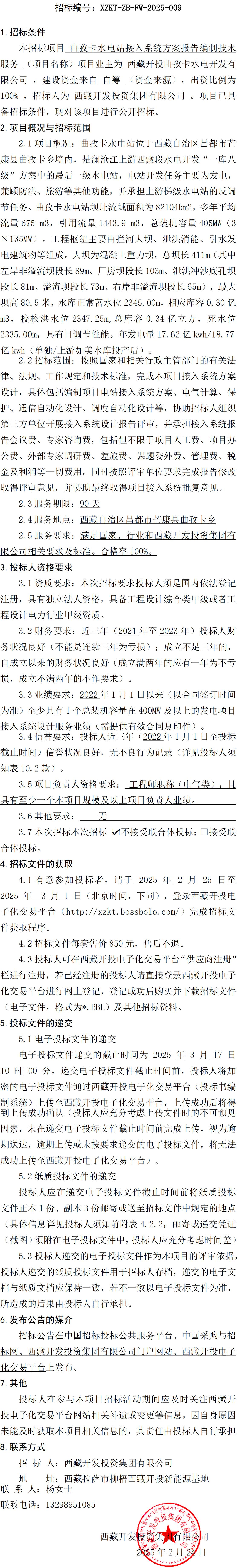 曲孜卡水電站接入系統(tǒng)方案報告編制技術服務招標公告