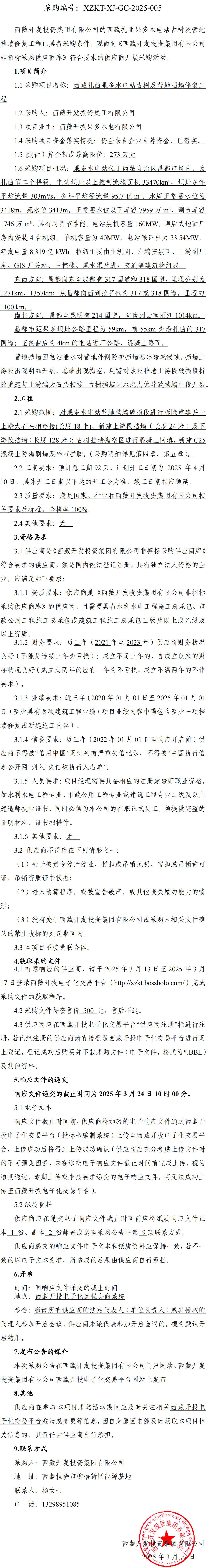 西藏扎曲果多水電站古樹及營地?fù)鯄π迯?fù)工程詢價(jià)采購公告