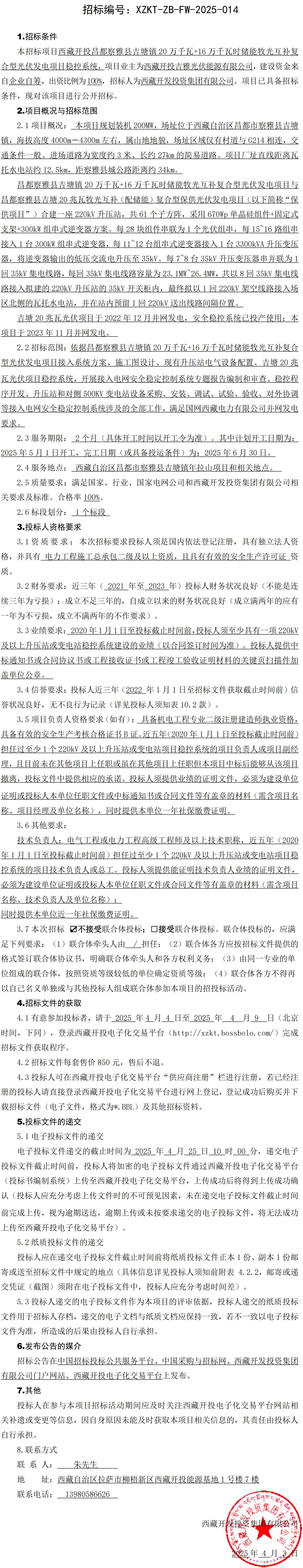 西藏開投昌都察雅縣吉塘鎮(zhèn)20萬千瓦+16萬千瓦時(shí)儲(chǔ)能牧光互補(bǔ)復(fù)合型光伏發(fā)電項(xiàng)目穩(wěn)控系統(tǒng)招標(biāo)公告