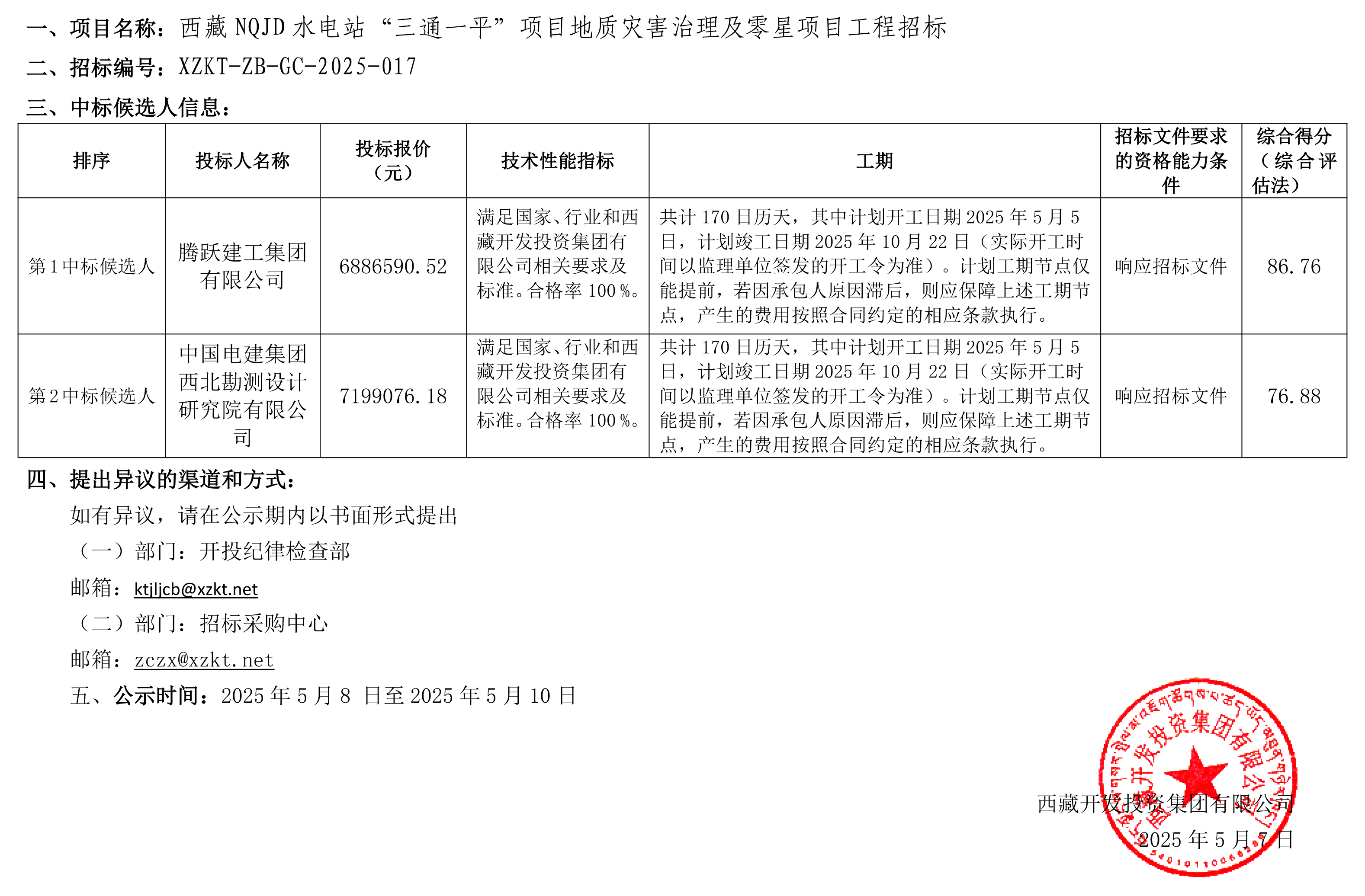 中標(biāo)候選人公示