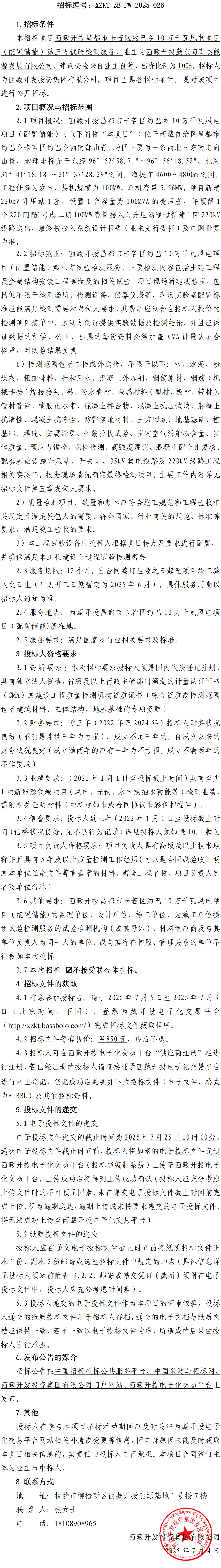 西藏開投昌都市卡若區(qū)約巴鄉(xiāng) 10 萬(wàn)千瓦風(fēng)電項(xiàng)目(配置儲(chǔ)能) 第三方試驗(yàn)檢測(cè)服務(wù)招標(biāo)公告