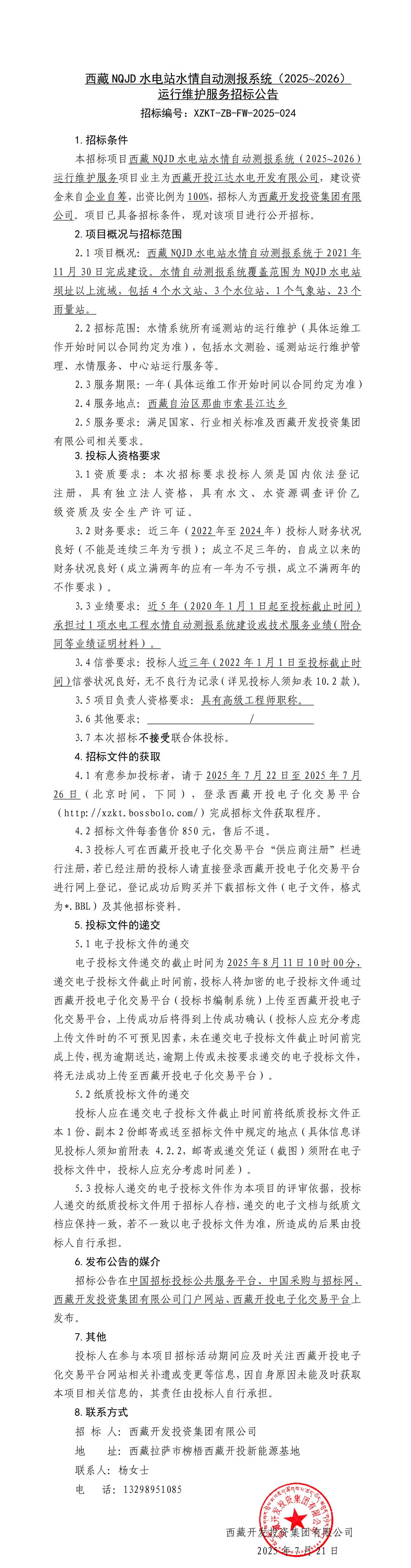 西藏NQJD水電站水情自動(dòng)測(cè)報(bào)系統(tǒng)(2025~2026)運(yùn)行維護(hù)服務(wù)招標(biāo)公告