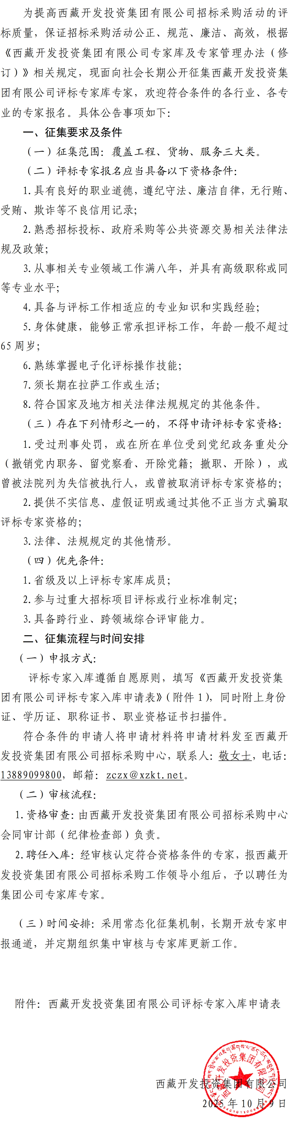 西藏開發(fā)投資集團(tuán)有限公司評(píng)標(biāo)專家?guī)鞂<艺骷?/strong>