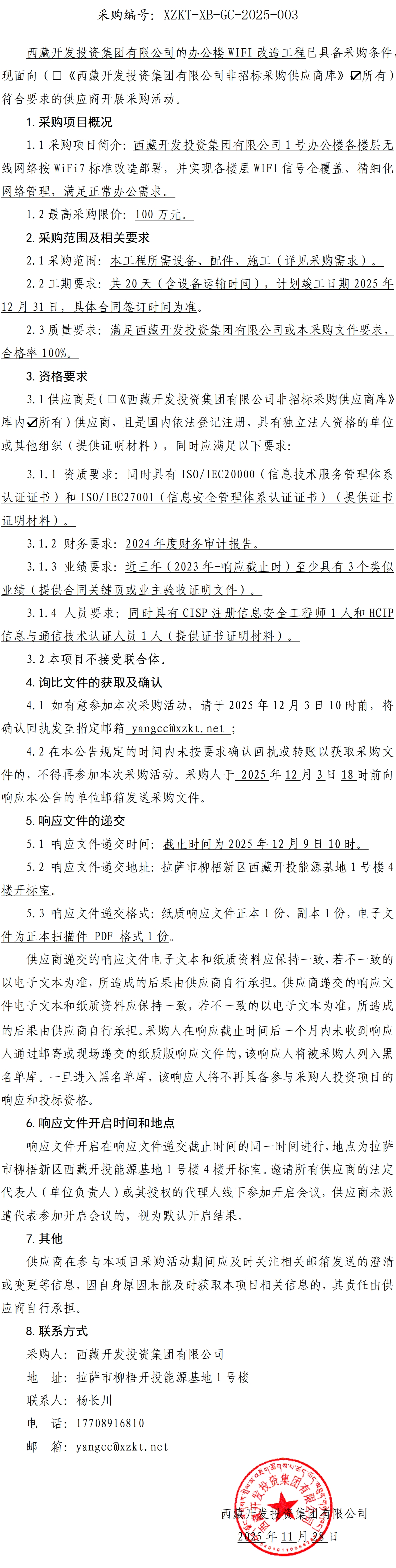 集團公司辦公樓WIFI改造工程詢比采購公告